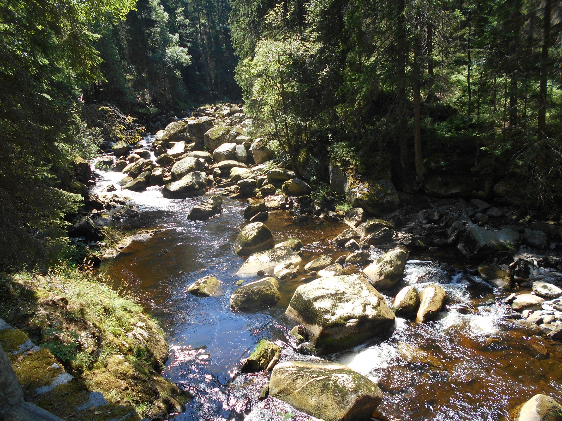 Řeka Vydra je prý výkladní skříní národního parku Šumava - nebo aspoň jsem to tak slyšela. Možná si na první pohled řeknete, "fuj, ta řeka je ale špinavá" - no ono se není čemu divit, protože řeka má temně rezavou barvu, protože potoky, které jí napájejí, vytékají z rašelinišť a proto je voda ve Vydře bohatá na přírodní látky a to je důvod její rezavé (na první pohled špinavé) barvy.